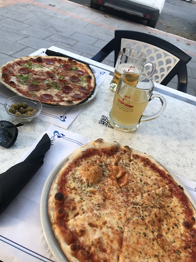De la comida, la verdad que es una de las mejores pizzas 🍕de Marbella, con una masa jugosa fina pero sin llegar a ser.... Papel, pizzas grandes y colmadas, con fundamento y cargadas jejeje, las ensaladas 🥗 son grandes y se nota la calidad del producto, no es nada de bote como en otros restaurantes, y si algún ingrediente no te gusta le puedes pedir que te lo cambien o que te lo quiten q no tiene inconvenientes.