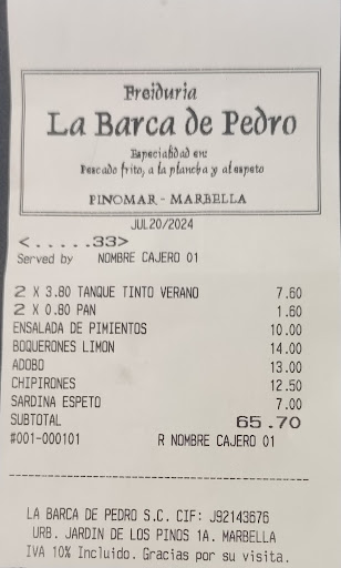 Read moreDe los sitios donde apetecía venir a comer, pero hoy para olvidar. Media hora después de comer dos de los tres platos, nos dicen q el tercero no llega pq se ha acabado. Menos mal q lo solicitamos, pq si no estaríamos esperando Damos otra oportunidad y pedimos una ración de calamares. Suerte la nuestra q pasados unos 45 min volvemos a solicitarlo y nos dicen q, ups espera q ya llegan. 10 min después ya pidiendo la cuenta los traen...no he visto peor rebozado en la costa malagueña, se cae todo lo del calamar además dl exceso de aceite q regalan Con tal descontento pedimos la cuenta q no nos apetece q se rían más de nosotros. Se paga la misma y cuando estamos llegando al coche nos dicen q falta cobrar esos maravillosos calamares... Q pena q pasen cosas así, hemos perdido toda la confianza ganada después de tantos años. Ante errores ni un detalle, así se...