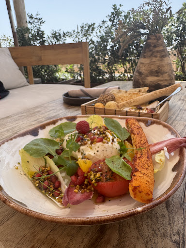 The setting is absolutely gorgeous. Natural dunes, protected area, ocean views, and tasteful décor with macrame parasols and wooden paths. It feels wild, yet curated – the perfect mix. Whether you’re here for a long lunch, a glass of chilled wine, or just to unwind – this is the place.