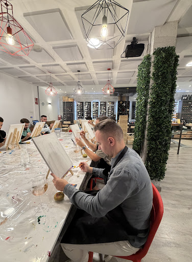 Mientras avanzábamos en la degustación, comenzó la parte artística. Con copas en mano, pinceles y lienzos listos, nos lanzamos a pintar. Lo mejor fue que no hacía falta ser un experto: el enfoque era disfrutar, expresarse y divertirse. Entre risas, terminamos todos con obras únicas y recuerdos imborrables.