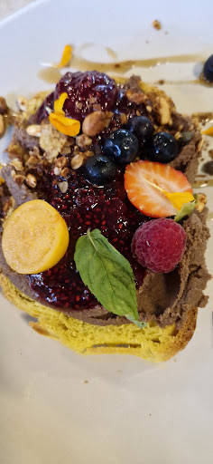 Y después llegó lo de colorida , la tosta Choco Healthy, también de pan de masamadre, llena de toppings cereales y frutales sanos y de primera calidad. Un auténtico regalo para la vista, el paladar y el cuerpo. Y el secreto del choco que os lo cuenten cuando vayáis...