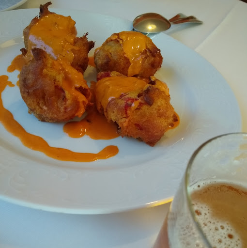 Read moreEn el rincón de La Almazara, puedes aparcar fácilmente. El salón es acogedor con mesas bien vestidas y sillas cómodas, a la altura adecuada para poder disfrutar de una comida tranquila y agradable. La carta es lo suficientemente amplia para poder elegir bien, dividida en entrantes, arroces, pescados, carnes y postres. Cecina, salteado de setas, croquetas con pisto, queso, mollejas a la plancha, carcamusas, lomos de lubina, chipirones, chuletitas...son algunos de los platos que puedes elegir. Todo elaborado con productos de calidad, cocinados y presentados de manera correcta, casero, como los postres, y sin nada superfluo. En las fotografías: piquillos rellenos de marisco, con una tempura crujiente y fina, y salsa suave. Croquetas caseras con pisto. Solomillo de ternera jugoso, con muy buena textura y al punto de cocción, acompañado de pimientos y unas doradas...