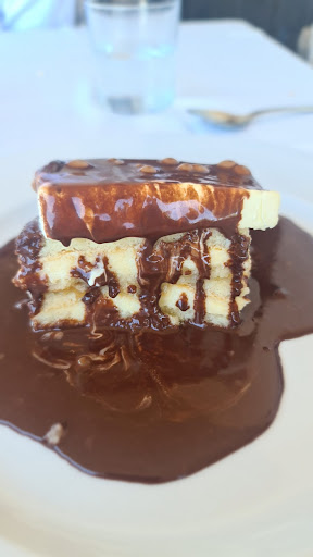En los postres ....BROWBIE de CHOCOLATE Y HELADO......TARTA DE QUESO CASERA ESPECTACULAR Y BIZCOCHO RIQUISIMO.
