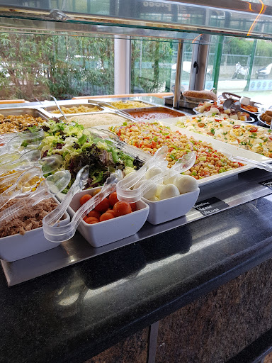 Lo primero que hicimos es llamar porque nos parecía raro que un restaurante buffet libre estuviera dentro de un gimnasio. Nos confirma la camarera (muy maja, por cierto) y nos dice que el buffet libre son 13'95€ y que incluye postres y aguas ilimitadas. La comida está muy buena (destacaría la paella negra), el sitio está súper limpio y la atención es impecable. El buffet consta de varias opciones con ensaladas, carnes (acaban de añadir esta opción), pastas y otras comidas preparadas. Muy buena opción si quieres comer mucho, de buena calidad y estar en un sitio...