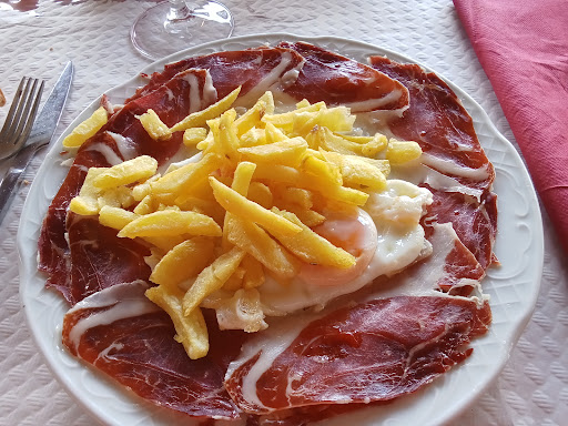 Read moreEl primer plato y postre adecuados al precio del menú (primeros platos ricos y adecuados en cantidad y calidad y postres caseros muy ricos pero bastante escasos). En lo referente a los segundos platos el jamón es ibérico y bueno pero a las tres personas que comimos huevos fritos con jamón nos presentaron unos huevos que literalmente nadaban en aceite. En cuanto al servicio, el local consta de varios comedores siendo uno de ellos de notoria inferior calidad que el resto: pequeño, oscuro y cerrado. Obviando que tal diferencia de confort solo se entendería con una similar diferencia en el precio de menú que no existe, ocurre que dentro de este comedor pequeño, oscuro y cerrado hay una mesa que se encuentra entre dos puertas que continuamente utilizan los camareros para dar servicio a éste y a otro comedor colindante, lo que no deja de ser una molestia para los comensales que la utilizan. A pesar de haber contabilizado hasta otras cinco mesas libres que por disposición y espacio se podían montar sin el menor inconveniente para cuatro personas (seis mesas si contamos una aún con los platos de postre sin recoger) y a pesar de pedir a la camarera poder utilizar cualquier otra mesa más cómoda, teniendo reserva desde hacía días acabamos sentados en aquella mesa de aquel comedor pequeño, cerrado y oscuro. Los argumentos que nos dió la camarera (en un tono demasiado alto sin razón alguna) sonaban a excusas para justificar su falta de consideración: esta otra mesa está reservada (nos fuimos a las 16:30 y nadie la ocupó), ahora no me voy a poner a montar una mesa (¿de verdad que dar un buen servicio no merece los tres minutos de montar una mesa cuando ya estás en el último turno de comedores y la situación te lo está permitíendo de manera sobrada?). Ni siquiera lo consultó con su encargada o con la compañera que estaba sirviendo en ese comedor, demostrando su nulo interés en...