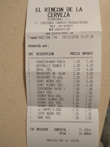 Las cervezas estaban buenísimas y nos encantó poder probar una de cada país. Excelente atención al cliente, gran profesionalidad y muy buena relación calidad-precio, inmejorable.
