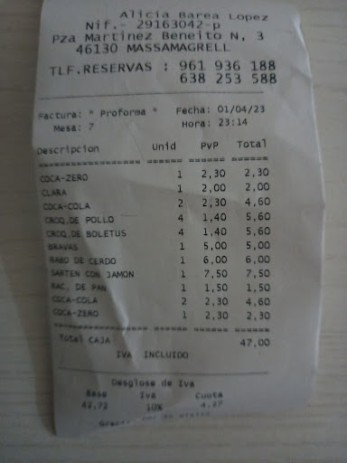 Y por último el precio, para lo que cenamos, la cantidad que habia por plato y el servicio...