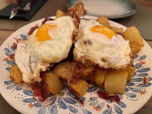 Vam demanar📸: -Ous estrellats amb encenalls de pernil de Gla -Delícies de pollastre cruixent amb salsa formatges -Pizza Formentera:tomàquet, mozzarella,sobrassada,formatge de cabra i mel -Postre de xocolata i festuc @angiepizzeria 📍C/Sant Joan,66,Matadepera ⭐️ 8/10