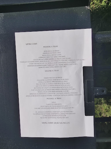 Restaurant d brasa i agradables vistes a Matadepera; ja ens podem situar. Menú diari setmanal x 19,90€ (amb Begudes i IVA). A escollir entre 5 primers i 5 segons, però 6 dels plats amb importants suplements. Ajustada oferta diria; Q&P.
