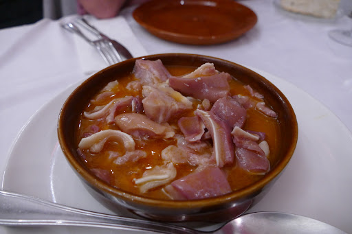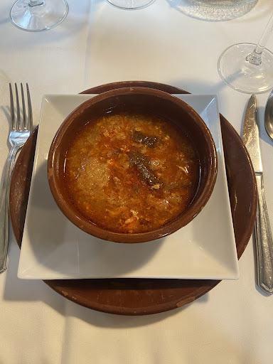 Read more¿No has probado los pinchos del Mesón de Pedro? Pues estás tardando. Los tienes de lechazo y de conejo. Hechos a la brasa de verdad no como dicen los del fast food. Nosotros (éramos 2), tras tomar una cerveza, como hacía fresco, abrimos boca con unas sopitas de ajo que atemperan desde la coronilla al meñique del pie. Muy ricas. Luego un pincho de lechazo para compartir y media de ensalada. Todo regadito con vino, (4 copas 912 altitud) postre, flan de huevo a compartir y café. La casa invitó a un chupito con hielo. Detallazo. Salió todo por 53 euros. Por ponerle un pero, pedimos las cervezas nada más entrar para tomarlas mientras mirábamos la carta, para cuando las trajeron se nos juntaron con la sopa y eso que otros dos camareros nos habían preguntado si queríamos tomar algo mientras elegíamos y les habíamos dicho que teníamos pedidas dos cervezas. No tenían casi gente (día de diario lluvioso), y ese tipo de cosas en algunos sitios con personal acostumbrado a currar al 110% y a manejar el comedor hasta los topes, a veces pasa, que cuanto en cuanto se llena se arrancan, pero hasta entonces... Eso sí, amables y atentos en...