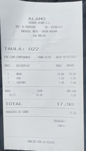 En resumen, mi estancia en Brasería Alamo de Mataró fue simplemente maravillosa. La ensalada de la huerta exquisita y la carne araña simplemente deliciosa hicieron de esta visita una experiencia gastronómica inolvidable. Definitivamente volveré a visitar este restaurante y lo recomendaré a todos mis amigos...