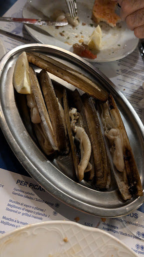 Read moreMe han recomendado este sitio por los arroces, pero he de decir que pase rápido a comer a mediodía y me esperaba una jornada de faena bastante movida por la tarde así que me pedí una otra cosa. Hemos ido sin reserva, he llamado previamente y a pesar de ser pleno mediodía - quizás por ser un lunes - no estaba tan concurrido y no hizo falta reservar. El local es amplio, tiene una terraza grande que da vista a la playa (a lo lejos) y dispone de aspersores que te refrescan constantemente mientras comes bajo el calor inclemente del verano - si estás en la playa dándote un baño y haces una pausa para comer, eso es otra historia -; también puedes sentarte dentro pero no se que tan fresquito estés, ademas que comer viendo la playa, para mi es un plus definitivamente. El servicio ha sido amable, atento y bastante rápido, la comida estaba buena, hemos pedido una ensalada verde, unas navajas, un atún a la plancha y un entrecot, esto más bebidas unos 62€ para dos personas. Las porciones bastante correctas. El término del atún particularmente no me gusto, estaba entre sellado y pasado, con lo cual por algunas partes estaba blando (como crudo) y por otras muy bien hecho, aunque el sabor al ajillo que tenía le daba buen gusto. El entrecot era una porción grande, no me gustó a la vista que venía bañado en sangre, a pesar de haberlo pedido al punto pues no suele ser lo habitual encontrártelo así. La salsa Roquefort venía aparte y me ha parecido un acierto porque así vas poniendo lo que consideres, ya que a veces puede empalagar un poco. Decir que los arroces que salían tenían muy buena pinta, tocará volver al lugar para degustarlos y así...