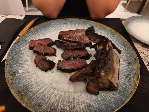 Read moreRead moreEn una frase: Fantástico local, una sorpresa totalmente positiva y agradable, la verdad. Fui porque lo vi promocionado en Instagram y por el buen precio que se anuncia, y.... Salí entusiasmado. El local es pequeño y acogedor. De hecho, la ubicación es un poco rara, en el sentido de que has de ir a propósito alli. Es una calle sin locales, sólo viviendas bajas. Dentro, las mesas y sillas son cómodas (quizá las individuales un poco pequeñas), no muy pegadas unas a otras. Se puede tener privacidad, lo cual se agradece. No es un sitio romántico pero tampoco es informal en plan low cost. Yo fui con mi pareja de hecho, y lo pasamos muy bien, estuvimos muy cómodos. La comida, lo más importante (junto con el precio), fue fantástica y además cantidades correctas. Hice fotos a todo lo que comimos porque además la presentación estaba muy cuidada. Nada más pedir ya te sirven un aperitivo súper rico, edamame salteado con la grasa de la carne que sale en la parrilla. Sabrosísimo. Las croquetas de carne.... Sencillamente deliciosas, había más carne que otra cosa!!! Yo diría más bien que eran bolas de carne mechada 😂 La cazoleta de queso con sobrasada, igual, riquísima!!! Y también probamos el jamón de picaña, buah, qué delicia. Por último, mencionar el pan, de pueblo, y recién sacado de la brasa.... Madre mía qué cosa rica rica. El plato principal, el principal reclamo, el chuletón, muyyyy rico, sabroso, jugoso. Lo pedimos al punto y no hizo falta piedra (por cierto, que te la cobran, es lo único que me pareció feo) muy bueno. Un detalle súper chulo es que cuando lo van a brasear, te lo llevan a la mesa para mostrártelo -- top. Postre ya no pedimos porque éramos auténticas bolas, imposible comer más. Los precios, de 10 no, de 20... Muy buen precio para la calidad que dan. Pagamos 55€, con 2 cervezas refresco y agua. Excepcional para los días que corren. Y finalmente, el servicio, genial. Las chicas son súper majas, y la cocinera (creo que también dueña) salió durante el servicio a preguntar a las mesas, un detalle, aunque yo ya había pedido felicitarles por la comida... En fin, que cada vez que vaya por Mataró me sentiré muy tentado de regresar. Aunque no sea muy carnívoro, pero con sitios así.... Enhorabuena y seguid de...