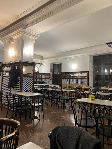 Read moreUn lugar muy especial, está en la primera planta y sin conocerlo nunca te enterarías desde la calle sobre su existencia. La decoración antigua y muy bonita, las baldosas de las paredes muy vistosas pero también rebotan mucho el sonido y cuando el lugar se llena se hace muy ruidoso. Hemos cenado unos bocadillos y tal cómo lo cuenta la gente - realmente...