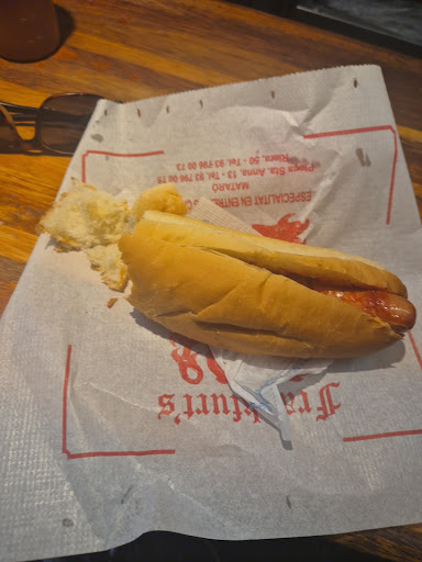 He ido hoy por casualidad. Tenia ganas de comerme una hamburguesa y he visto un Frankfurt estilo años 70-80. Había un par de chavales muy amables sirviendo. Me han atendido muy bien, a pesar de mis constantes quejas y sugerencias sobre la manera de preparar las hamburguesas. Por ejemplo, no me ha parecido adecuado servirlas en una barrita de Frankfurt, alargada, cuando lo suyo es un panecillo redondo, más acorde con la forma de la hamburguesa. También he sugerido que podrían tener más cosas para rellenar la hamburguesa, como tomate, lechuga, cebolla (no solo cebolla deshidratada) etc. Otra cosa que me ha parecido raro es que se tuviera que pagar la mayonesa aparte. La carne también la he encontrado demasiado especiada. Creo que actualmente la carne se sirve con menos aditivos, para saborear su gusto real. Está claro que es un lugar muy conocido en Mataró (llevan casi 60 años!!), con un público fiel y amante del Frankfurt a la...