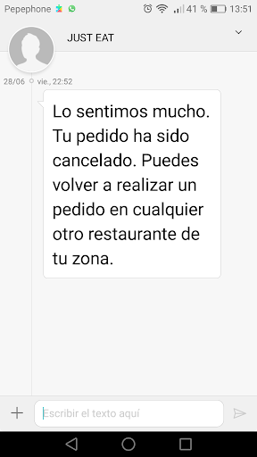 Si no podeis entregar unas pizzas porque aceptais el pedido??? Super decepcionada. Ni si quiera dais la cara, que me han llamado de just eat para anular el pedido. Cliente perdido, no volveré a pedir. Me aparecía en el pedido que me llegaría en una hora y de pronto me llaman para cancelarmelo.. ademas 20 minutos después de pedirlo!!! Menudo churro. Despues de tu respuesta aprovecho para editar mi comentario. Lo primero es que soy local guide de google de nivel seis. Lo segundo es que estoy siguiendo la norma de que hasta que no voy a un sitio ocho o diez veces no hago reseña, asi conoces la calidad del sitio, tanto en producto como en el personal humano. Lo tercero es que el pedido lo hice antes de las 10:30 de la noche y me lo aceptasteis, me llamó una chica de justeat para hacerme la devolucion en la tarjeta. Lo cuarto, si te molesta venir a las afueras de Mataró no des el servicio que nosotros seguiremos pidiendo a sitios que si lo dan. Lo quinto, como tengo un negocio de cara al público te voy a enseñar lo que deberias haberme contestado en la reseña...a ver si a la ptoxima reseña mala que tengas das la cara en vez de justificarte y echar balones fuera. "Estimado cliente, sentimos no haberle podido hacer entrega del pedido. Estabamos colapsados y cuando nos dimos cuenta ya habiamos aceptado su pedido. Esperamos que siga haciendonos pedidos que los entregaremos con gusto en su zona. Cualquier cosa que nos pueda indicar para mejorar llámenos, estaremos encantados de escuchar. Esperamos vuelva a hacer pedido pronto." Esto es lo que se hace para no perder un cliente semanal...en vez de echar balones fuera. A continuación dejo una foto de cono sí que aceptasteis el pedido ya que justeat nos envió este mensaje. Si mirais la hora de la foto podreis ver como es imposible que hiciera el pedido a las 23h si justeat lo estaba cancelando...