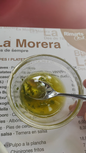 Read moreFuimos a cenar y la experiencia no fue agradable. Las mesas que ya se marcharon estaban por recoger, tanto es así que los camareros dejaban en ellas los platos de las mesas que estaban cenando a medida que se los acababan. A mi no me parece algo lógico pero cada uno en su establecimiento trabaja como quiere. Esperamos la bebida durante 20 minutos, pedimos 5 platos. Las bravas llegaron a los 10 minutos, no estaban calientes pero tampoco templadas, dulces, eso sí, aunque el gusto es subjetivo así que por ahora nada que no solucione un poco de sal. Para los dos siguientes platos tuvimos que esperar media hora. Calamares a la plancha y oreja al estilo "la morera". Ambos platos llegaron fríos, los calamares totalmente dulces, los 4 de la mesa coincidimos en ello; la oreja parecía recocinada, estaba fria, pastosa y con esa capa de aceite solidificada cuando algo ha estado guardado, no creo que esa fuera la idea al hacerlas con ese estilo, si es así, supongo que habrá a gente que le guste. Más de media hora más tarde llegaron las gambas al ajillo, de nuevo un plato que llega frío, una mezcla de sopa de aceite ajos y gambas duras. Pedimos morralla frita pero no llegó nunca. Pedimos que cancelaran el plato, el camarero no mostró el más minimo interes en el motivo, asi que sin más importancia lo canceló, preguntó si queríamos postre o café, declinamos la oferta y pedimos la cuenta. Antes de tener la cuenta, una camarera nos traía el plato de morralla que habíamos cancelado, le explicamos la situacion y después de escuchar sus quejas porque el plato era para nosotros, la mesa que teníamos al lado se lo quedó. Volvimos a pedir la cuenta, al rato pudimos pagar. La verdad es que la terraza es muy aprovechable, grande, espaciosa entre mesas y no hay mucho ruido, es una lástima que tanto el servicio como la comida fueran...