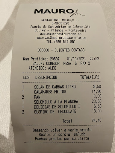 Read moreDurante mis vacaciones en Galicia estuve en 3 Restaurantes que considero imprescibdibles: Maruja Limón (Vigo; Excelente con 1 Estrella Michelín), Muiño do Vento (Pontedeume, productazo) y Mauro (Vilaboa, muy cerca de Vigo). ⠀ Mauro me fue recomendado por muchos de vosotros y si se da que estéis leyendo estas líneas os quiero recalcar mi agradecimiento ya que he podido comer el mejor Arroz de mi vida, aparte de una cena superdivertida, en la que comí más que nunca. Para los curiosos, en mis Historias destacadas de Galicia tenéis lo que pasó 🤣 ⠀ De este lugar destaco la excelente relación calidad - precio. Digno también de citar su excelente local, situado a pie de la ría en una plataforma con unas vistas espectaculares. En la foto 🔟 podéis haceros una idea. Tengo más fotos del sitio, pero era aduntar eso o la Carta.. He decidido sacrificar el ambiente, que rebosa elegancia por doquier. Si comentar que al ser una plataforma retumba muchísimo el suelo y se hace algo incómodo ya que a menudo te vienen vibraciones de los pasos cercanos. ⠀ Por sitio y cocina salgo contentísimo. Sin embargo si me he encontrado puntos mejorables que como de costumbre me gusta plasmar: Las Croquetas caras y acompañadas de Salsa de Ketchup ¿Hola? Demasiado inconexo.. Lo que me vendieron como Zamburiñas eran Volandeiras 😕 Parece que el Karma les castigó y no me las cobraron 🤣. El personal escaso, 2 personas para toda la sala estando esta reventada (prácticamente sin mesas libres); confio que fuese por pocas reservas y demasiada visita express.. Si no, un refuerzo no viene mal porque los pobres no daban a basto. Y por último, una norma un tanto sinsentido como es servir los Arroces a mesa completa. Yo entiendo que haya un mínimo de personas como es habitual, pero si somos 3 y solo lo quieren 2, ¿Cuál es el problema? Al final suplicando lo conseguimos.. Por tanto si acudís ya sabéis “Quien no llora no mama” 😜