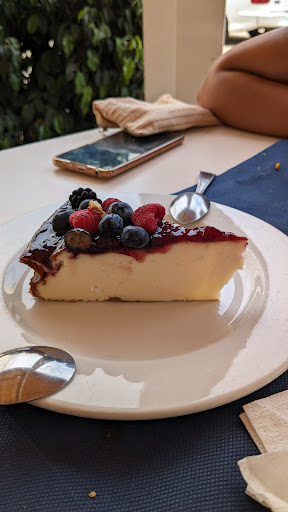 Ya bastante saciados, nos ofrecen los postres caseros, y nos íbamos a ir sin probarlos, pero dada la buena experiencia con el resto de platos, optamos por un trozo de tarta de yogurt con frutos rojos, pero más bien era tarta de queso, muy rica pese a que no me gusta el queso 🥲. Los frutos rojos pese a ser ácidos, estaban dulces.