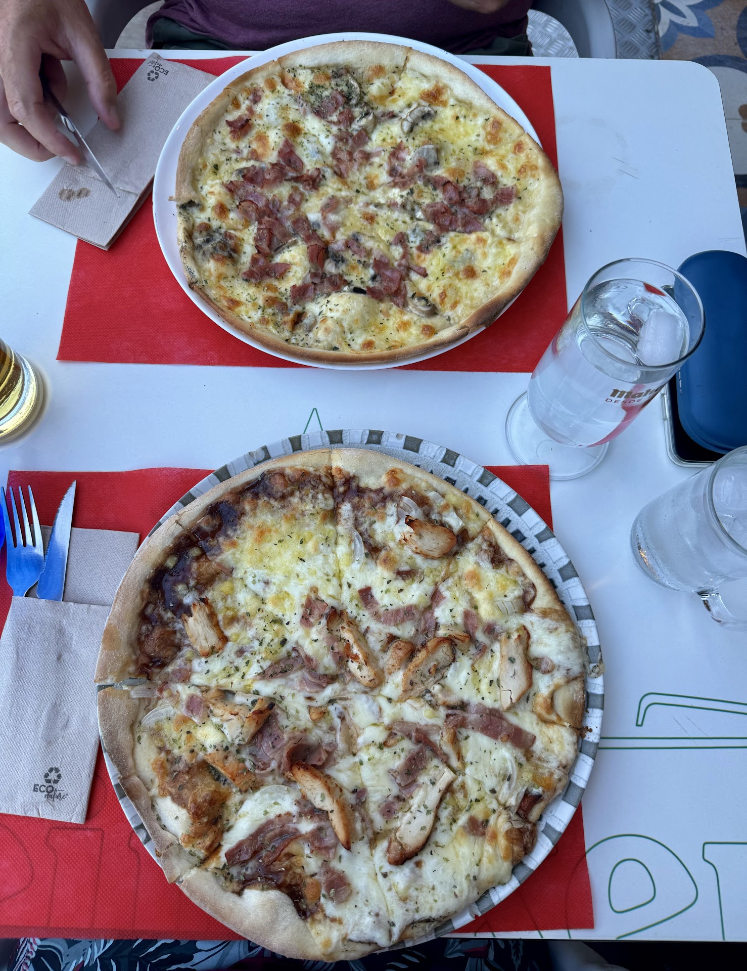 Very hard to rate this place. Easily the best meal we've had in Spain on the first day we ate here with large portions and great flavors (Andalusian style calamari, goat cheese salad easily big enough for 4 to share, and fried camembert). We returned and tried their pizza and the seafood fettuccine (not good). Probably worth a try if you avoid the pizza and pasta. They did have fish specials over lunch which I...