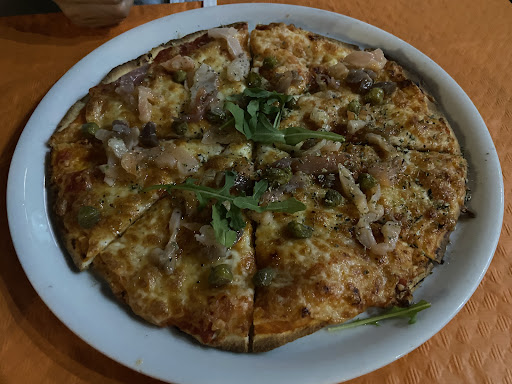 Oh dear. I ordered a tomato, cheese and ham pizza costing 7 euros and was very unhappy with what was delivered to my table. The thin base was hard and tasted like cardboard. Cheese and tomato toppings were