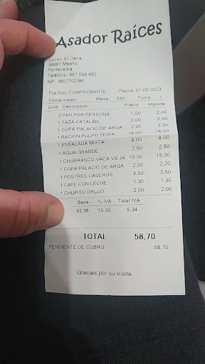 Read moreLo primero que me pareció mal es que nos dijo que el menú costaba 15 euros pero lo que no nos dijo es que era sin IVA esto ya de entrada no me gustó nada cuando nos enteramos. Tenían cocido para comer la sopa está muy buena pero cuando nos trajeron el resto solo trajeron verdura y carne y un puñadito de garbanzos y éramos seis personas y había garbanzos ni para una persona. Y eso que el menú no era barato porque eran 16,50€. Nos estafó ya que sabía perfectamente que no tenía garbanzos. Luego se los pedí pero me trajo unos de bote con un poco de caldo que estaban malísimos. Menudo caradura. No lo recomiendo en absoluto. Son unos estafadores. Nos dice que el cocido gallego no lleva garbanzos.... Lleva alubias o garbanzos, o las dos si se quiere, pero en su caso ni una cosa ni la otra. No me haga comulgar con ruedas de molinos. Tengo familia gallega, y he pasado muchos veranos en Galicia. Y por supuesto que los garbanzos que nos trajo cuando los pedidos eran de bote...se notan enseguida a poco que...