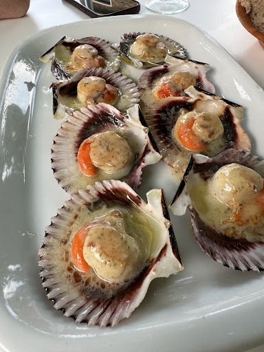 And what to expect? Delicious plump scallops in an albariño beurre blanc - some of the best we have tried in the Rías Baixas - a salad of incredible tomatoes which need 2 months to ripen under the Galician sun.