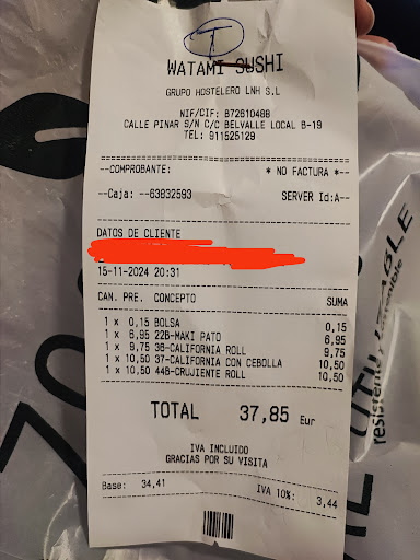 Read moreComida buenísima,soy fan de la comida asiática y este sitio tiene calidad demostrada peroooo... les falla el servicio al cliente.Soy de Camarma, urbanización el practicante.En su web dice que llegan a camarma y sin embargo cuando les pides para el practicante q está a 5 km te rechazan el pedido,ya van 2 veces últimamente y he pedido wn otras ocasiones y me han puesto un mínimo que he pagado sin rechistar pq la comida lo vale y pq me gadto el doble siempre en su restaurant.Sin embargo reparten a pueblos mas lejos como Daganzo ..no los entiendo.Se están quitando...