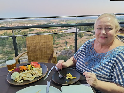Read moreHemos comido hoy en este restaurante guiados por las numerosas reseñas positivas. Me cuesta entender esta opinión tan favorable de otros usuarios. La situación del restaurante, con vistas al Castillo de Medellín es probablemente lo mejor. La terraza también parecía muy agradable. Nosotros comimos en el interior, correcto. En cuanto a la experiencia gastronómica, no ha merecido la pena. Para empezar hemos pedido una Ensalada Cesar y unos Huevos Rotos con Carabineros y Trufa. La salsa césar estaba bien conseguida, sin embargo, el pollo rebozado que llevaba no tenía ningún sabor, parecía industrial. En cuanto a los Huevos Rotos con Carabineros y Trufa, bastante mal: los huevos, ni estaban rotos, ni estaban ricos (mal fritos, parecían cocidos, sin sabor). Los carabineros tampoco tenían nada de sabor y la trufa, no sé si estaba o no, la verdad. Había unos trozos negros esparcidos por encima que tampoco sabían a nada. En la base del plato había unas patatas panaderas a medio cocer. En fin, un plato poco pensado, para olvidar. Pensamos, quizá no hemos acertado con la elección de los primeros, seguro los segundos platos mejoran. Pedimos unos Medallones de Solomillo (de cerdo) con crema de Torta de la Serena y un Arroz con Liebre. El Solomillo bien, correcto. En cuanto al arroz, casi lo dejamos entero sin probar. Al parecer, la base del plato es un caldo con especias. Al cocinero se le debió caer un frasco entero de clavo porque el arroz no sabía a nada más. Una pena de plato, en el que era imposible disfrutar ni el sabor del arroz ni el de la liebre. Los camareros iban recogiendo los platos a medio consumir sin preguntar ni decir nada... El precio tampoco estaba en línea con la calidad de los...