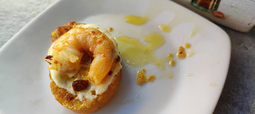Read moreVeníamos de una excursión por el canal de Castilla y encontramos este local de tostas y raciones, en el pueblo. Con las cervezas nos obsequiaron con dos tostadas de gambas. Pedimos unas tostas de gambas y una ración de callos con chorizo. Nos relamiamos. Dejamos la cazuela limpia, después de rebañar con el pan. Hacía tiempo que no comía unos callos como estos. El local estaba a tope, era el día del Pilar y ya no cabía un alma. Lástima que ya nos volvíamos a casa (varias horas de viaje) , porque era para haber pedido más cosas. Nos quedamos...