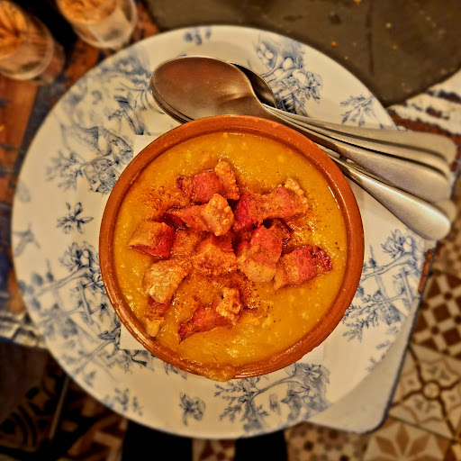 Read moreHacia mucho que no comía en él alegría(comí de menú 12€) de entre varios primeros y segundos, mi elección crema fría de tomate con virutas de jamón y brocheta de melón muy rico, con ligero toque de ajo, de segundo como no rabo de toro acompañado de patatas fritas y verduras. Estaba bueno, pero le faltaba la salsa tirando a espesa típica de ese plato, era líquida aún así lo comí todo. De postre yogur natura. Aunque el rabo de toro no estaba como solían hacerlo tiene mis 4* y lo recomiendo, el comedor está limpio buena temperatura y me gusto la decoración. Los camareros son rápidos y eficientes y en mi caso se preocuparon por si había comido bien. Sin duda...