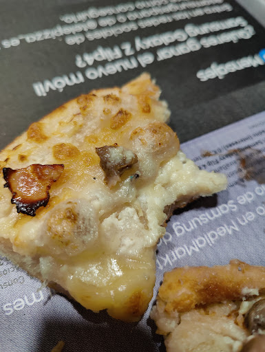 Read moreLa entrada si te despistas te la saltas, da la impresión de estar cerrado. pizza sin gluten, el bacon tostado, pero la masa, el mazacote de queso y el tomate en la parte central de la pizza frío de nevera, (en mi parecer, tardarón demasiado póco en preparar, apenas 5 minutos desde pedido hasta la mesa) solo los bordes estaban "templados " evidentemente no pueden volver a meterla al horno sin su protección, decidí no quejarme, dejar lo incomible y con no volver será suficiente. En algún punto del proceso debió contaminarse, ó al menos así reaccionó mi abdomen.