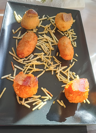 La ración de croquetas es una lástima que no las pongan variadas, ya que si quieres probar los dos sabores que tienen, te tienes que comer 14 unidades, y si solo vas dos personas , como en mi caso, es inviable, porque entonces no puedes probar más cosas. Pedimos entonces las de pulpo, y la verdad que estaban muy buenas. El cebiche, también estaba muy rico, para mi gusto le sobraba la oblea en la que lo emplatan, pero vamos, que esta muy bueno!