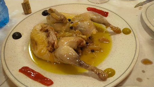 Por la noche otro día nos acercamos con la intención de picar algo y como todas las mesas de la barra estaban ocupadas nos sentamos en el comedor, una ración de pulpo, muy bueno con la única pega de que tenía un poco de exceso de sal y una perdiz escabechada, sublime. Yo creo que pedimos los dos platos más caros de la carta y con una botella de Legaris y otro de agua tampoco llegamos a los 40 €. Debo decir que hacía tiempo que no comía un pulpo tan bueno y tan barato.