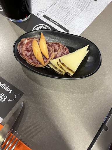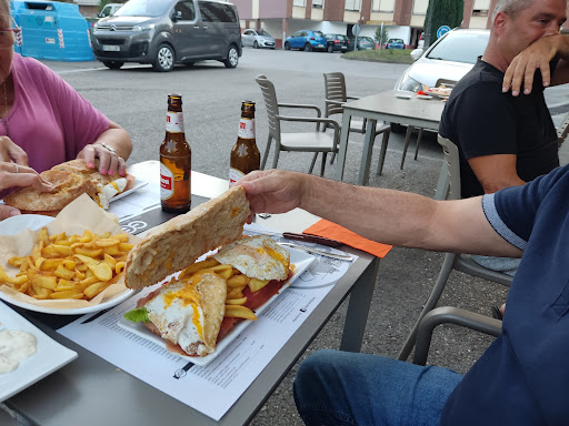 Fuimos a cenar unos amigos y yo Con temor a no poder coger mesa, por ello recomiendo ir entorno a las 20:30 como tarde, al final tuvimos suerte y en terraza nos dieron mesa en 5’. La primera imagen es el pincho que nos pusieron con las bebidas. Esto refleja el buen sitio que es y que es un buen bar de pueblo. Después empezamos a pedir, como se ve es todo de muy buena cantidad y muy buen precio. El camarero nos aconsejó que no pudiésemos tanto pero no le hicimos caso, aunque agradezco que se preocupase. La ensalada de cecina espectacular y las rabas se notaban que eran naturales. Las patatas eran caseras y se notaba. Y un torrezno espectacular. Luego pedimos las hamburguesas, que la verdad que estaban increíbles. Yo me pedí la de foie y cebolla caramelizada y la verdad que fue una muy buena elección. Por último pedimos postres y nos sorprendieron con una deliciosa tarta de queso y lotus, la verdad que 10/10. Encantado con el sitio y con los camareros que en todo momento se preocupaban porque todo estuviese bien. El ambiente muy bueno con mucha gente pero se podía estar...