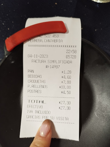 Read moreComida casera espectacular... las rabas, zamburiñas y croquetas que pedimos de entrantes con mucho sabor y buena cantidad a precios contenidos. De plato principal pedimos cocido Montañés para 5 y nos trajeron pucheros que nos dio para tres platos a cada uno. Mi sobrina mayor pidió una chuleta que de chuleta nada.... Era un chuletón de cerca de un kilo con patatas caseras que tuvo que ayudarle mi hermano para acabarlo... Los postres caseros riquísimos; tarta de queso, tiramisú, leche frita y arroz con leche buenísimos... El trato muy correcto y...
