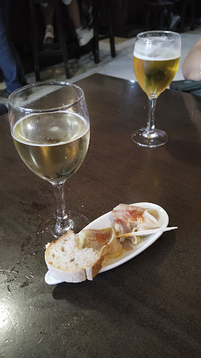 Nos sentamos en la terraza de este bar a tomar un café. La terraza tiene unos incómodos banquitos de madera atornillados al suelo, por lo que no se pueden mover y están todos prácticamente pegados. Además las mesas no estaban muy limpias, al menos ese día.
