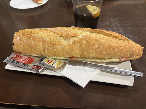 Read moreEstábamos ya sin saber dónde cenar a unas horas intempestivas. Paramos allí, pensando que nos iban a decir lo que ya habíamos oído 3 veces esa noche. "La cocina está cerrada" Pero cual fue nuestra sorpresa cuando nos atendieron con una sonrisa gigante, diciéndonos que pudiéramos lo que quisiéramos, y nos trajeron unos bocadillos GIGANTES y bastante bien de...