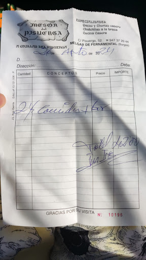 En cuanto al mesón, fuimos a ciegas, pues no hay ninguna indicación del precio, ni carta de menú, ni letrero con el menú y/o precio... De primero, espaguetis no estaban nada buenos, ni siquiera a mi hijo le gustaron (preadolescente que se comería cualquier cosa). Yo pedí ensalada.