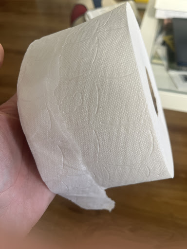 Eran las 09:35 de la mañana, había dos camareras, una bajita más joven que me vino a atender a la terraza porque yo estaba con un perro fuera y que fue adentro a consultar con otra chica un poco más mayor y un poco más alta que revisó unos papeles que tenía al lado de la caja y luego cogió una calculadora pequeña, intuyo que para calcular cuánto cobrarme por el rollo de papel. A mi lado en terraza solo había una mesa con 3 personas tomando cafés pero el local estaba bastante concurrido dentro. Pagué con un billete de 50€ y fue adentro a traerme el cambio. NO ME HE CONFUNDIDO DE LUGAR. Al terminar de limpiar me aseguré de volver a la entrada del local a comprobar dos veces el nombre del establecimiento. Y saliendo del local a mano derecha hay una papelera en la pared del propio edificio que aún debe tener una bolsa de papel marrón atada en la que guardamos el papel que utilizamos para limpiar el vomito. Añado además una foto del rollo de papel higinienico que me vendisteis. Al menos tened la decencia de asumir vuestros errores y...