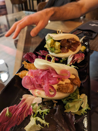 Asian style trend food. The theme / interior of the restaurant is cosy and warm, a bit medieval, so not what you'd expect when seeing the menu! The baos (tuna and prawn) were our favorites: very tasty, although we've had fluffier baos. The cod was cooked well. The rollitos (carrillada and pollo) were ok, one of them was broken so the oil had gotten it. The carrillada tasted a bit sour, maybe from the...