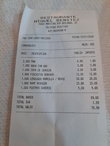Read moreThe best restaurant in Melilla in my opinion . The food was consistently delicious and the service was great . Bilal in particular was just fantastic . Gave us good recommendations and went begin the extra mile to translate and communicate with us in English . You will find restaurants lists recommending other restaurants . We have tried the majority during our stay MIGUEL BENITEZ was by...