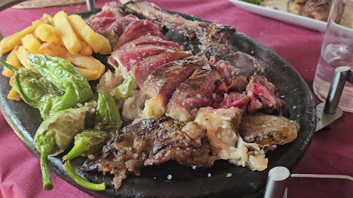 Mala experiencia. Reservamos para 7 en esta sidrería y la verdad que fue lamentable. Pedimos menú sidrería (35€) para 7, se supone que en un menú para 2 entra 1 chuletón, tortilla de bacalao, chistorra y postre: un plato super escaso de chistorra encima casi fria para los 7, nos dio a 3 trocitos para cada uno. La tortilla estaba rica. Cuando tocaba chuletón, nos esperàbamos 3 chuletones mínimo (éramos 7), pero nos pusieron dos. Se lo dijimos y nos sacaron para completar unos solomillos... Volviendo al chuletón, te lo sirven al punto en unas parrillitas para que te lo termines de preparar a tu gusto, la cosa es que las brasas estaban apagadas y el chuletón no se podía hacer. A mi marido le gusta la carne muy pasada por lo que le dijimos a la camarera que por favor nos trajera unas buenas brasas para que la parte de mi marido se hiciese bien, su respuesta fue “no tenemos más brasas”, en serio? Bueno, a base de insistir e insistir conseguimos que la parte de mi marido la hicieran a la plancha porque sino no comía. Eso respecto a la comida. Respecto el servicio, decir que bastante mal también, éramos 4 mesas y 1 camarera, que tardaba en subirnos la comida. Cuando pedíamos pan o agua tardaba mucho en dárnosla. Total que antes de pagar mostramos nuestro descontento y al final nos cobraron 6 menús (en vez de 7) pero la comida aún para 6 menús seguía...