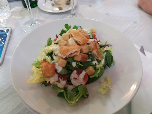 Bar de menú, en las afueras del pueblo. Que no se te ocurra ir andando desde el centro... El restaurante tiene bastante comedor, está limpio y tiene buena terraza. El camarero amable, cercano. Es un bar donde entran muchos trabajadores. Te ponen un tiquet en cada mesa con el menú del día, los platos de ese día. Paella, salmorejo, ensaladilla Pedimos una paella, ensaladilla de primeros y de segundo pollo al ajillo y carne en salsa. De postre helado (cono) y melón. La paella no era paella era arroz caldoso. La poca carne que traía estaba durísima, incomible, y con pocos tropezones. Solo era arroz y pimientos. La ensaladilla era de bolsa, que viene congelada y se hierve. Muy buena presentación en molde y con un puñado de atún por encima. Pero la patata tenía mucha agua y no tenía sabor, al no tener nada más. Los segundos platos, sin sabor, observamos que nos pusieron menos cantidad y diferentes patatas al resto de comensales asiduos ( nos vieron cara de turista). Lo más bueno el melón y el helado! Precio 12€...