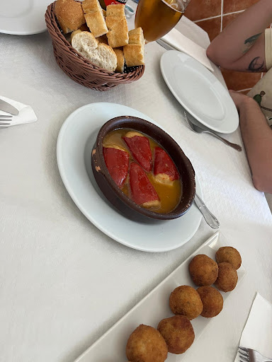Hemos disfrutado de una comida espectacular en este restaurante. Comenzamos con unos pimientos rellenos de bacalao sabrosísimos, seguidos de unas croquetas de níscalos que eran pura delicia, crujientes por fuera y muy cremosas por dentro. Las patatas revolconas, tradicionales y con su toque justo de pimentón, también nos encantaron.