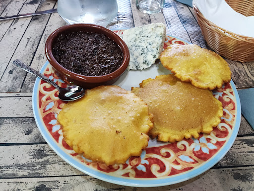 A veces menos es más. "Excusatio non petita, acusatio manifesta". Pedimos unos tortos de tres tipos: chorizo, morcilla y queso cabrales. Muy buenos. Unas patatas con salsa de queso cabrales. Buenas. Normales. La salsa parecía rebajada. No picaba. El cachopo para 4 personas. Bien también. Unas pocas patatas hubieran mejorado la presentación del cachopo. Cachopo clásico. De postre arroz con leche, que para mí estaba muy muy bueno. Lo mejor de la comida. Y digo lo mejor, porque si le llega este comentario al interesado, las continuas explicaciones a modo de excusa sobre cosas que ninguno de los allí presentes habíamos solicitado, mejor. Como consejo: 1.- Si llego, y tras darme reserva a las 15:00 por falta de sitio en vez de a las 14:30 como solicité, y sin apenas darme cuenta que en un comedor de 25 personas solo hay comiendo solo 3, no hace falta una explicación que no he pedido sobre cancelaciones y artimañas de algunos clientes. 2.- Cuando ese día no tiene algo de la carta como es la parte de mar, de marisco, con decir "hoy no tengo esto o lo otro", es suficiente. No me tiene que dar mil explicaciones sobre el precio de compra ni de las motivaciones que ese precio le suponen para su no compra. Con decir "no hay" es suficiente. 3.- Pan. Punto importante. Otra tanda de explicaciones que no vienen al caso. Somos 6 personas. 4 adultos y 2 niños de 4 años. Sin preguntar cuántas raciones sacar, sacar solo tres raciones no queda bien. Tampoco queda bien decir que no se sacan más porque suele meter al horno de pocos en pocos y ya se verá. Y ya la patada viene cuando un negocio, una sidrería lo que te sirve es pan congelado, y no un pan como Dios manda. Mismamente una chapata de panadería tradicional valdría. Mal pan y excaso. El pan y el café tienen que ser siempre acordes. 5.- No deje de poner en la tele música rockera asturiana como el concierto del grupo "Los Berrones" en la playa de Poniente...