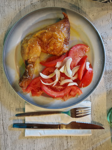 What a welcoming spot , i loved it . After getting settled in the albergue i walked on to this lovely little restaurant / bar . The lady there was so so helpful and nice ... i as always get settled with a wine or beer before seeing how the land lays in regards to food . I enjoyed several glasses of the white wine and then ordered food .... with a gesture (after seeing some other peregrinos eating ) lovely !!!! Got served a large serving bowl on the table of the galican soup , after 4 dishes i finished it . Then got served a chicken leg with sauteed potatoes .... lovely ... just what the doc ordered . I enjoyed a few more and maybe a few more wines after that , i asked for the bill and handed a €50 note to the lady ,she gave me change in notes which i put quickly into my wallet .. i left a €5 tip under my wine glass on the bar as i left ... when i checked walking across to the albergue i had only been charged €10 euros ALL food & wine .... i was amazed and embrassed .. once i reach santiago im going to sent a thankyou card and a proper € thankyou . Lovely lady and a nice cosy spot after a hard days walk ... please call in , you will not be...