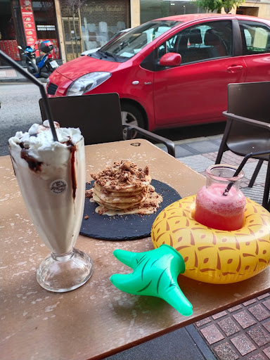 El café está bueno, y la camarera es un amor de persona. Pensábamos que los gofres eran pequeños y pedimos unas tortitas de más... Error por nuestra parte 😅 Y como nos vio la camarera que no podíamos con todo, nos ofreció llevarnos con lo que no pudimos.
