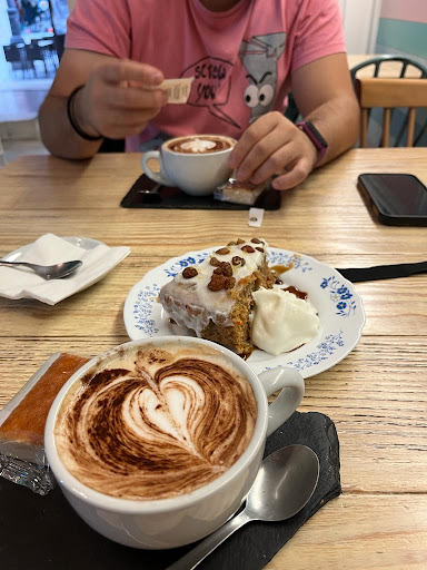 Read moreEl bar es muy bonito, con un ambiente cálido y unas mesas acojedoras. La carta es extensa, en batidos, tés y cafés, además de en dulces y tapas saladas. Lo malo es que de todo esto, para comer no encuentras una opción vegetariana. Por otra parte, nunca nos han atendido a tiempo: siempre hemos tenido que esperar entre 10 y 15 minutos, quizás porque están empezando nuevos en un negocio de hostelería, y hemos tenido que avisar en barra para que nos tomen nota, lo que parece molestarle muchísimo a una de las camareras. Ésta no se disculpa en realidad, sino que adquiere un tono un tanto beligerante, haciendo ver que, al reclamarles que nos tomen nota, a ella le parece mal y procura que en cada palabra suya se lo notemos. Además, es mejor pedir las cosas tal cual vienen en la carta, porque si haces una pequeña apreciación sobre tu consumición, le molesta aún más. Ya digo que es sólo una de las camareras, que los otros dos son mucho más profesionales y se nota que hacen lo que pueden, pero a nuestro grupo nos quita las ganas de ir por no aguantar sus...