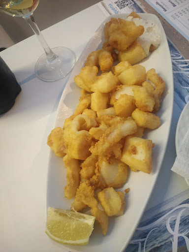 Y aquí empieza mi reseña, después de unos misteriosos 40 min esperando la comida, para nuestra sorpresa no aparece el entrante sino el adobo, que no hubiera pasado nada si no fuera, porque el adobo ( o al menos tengo entendido) no sabe a pinchitos, es más un sabor a vinagre, venía literalmente quemado y como un chicle el pescado, a lo cual nos dirijimos a la camarera (rubia de mediana edad , ya que no quiso decir su nombre) esta misma se llevó el plato con tan solo dos trozos probados, y nos dijo que para ella el plato estaba estupendo y que pudiéramos otra cosa porq esto es lo q iba a salir y que no iba a salir otra cosa, nos pareció raro ya que justo la mesa de al lado, tenía exactamente el mismo plato y mejor frito, con lo cual pedimos unos calamares fritos, 20 min más tarde sorpresa aparecio, el pulpo frito, he de decir q dicho plato no tenía queja especial, un plato normal. Ante la queja de mi padre por la tardanza de la salida de la comida, el camarero Jesús muy amable y muy atento fue a reclamar la comida q aún no había salido, he decir que este camarero es una persona muy amable. Bien después de reclamar dichos platos el camarero, contamos que ya ha pasado una hora, desde q se pidió la comida, salen las brochetas de langostinos y rosa más graciosas q he visto en mi vida, es decir, son unas brochetas sin ser brochetas, me explico, las brochetas y sigo diciendo q es en mi humilde opinión, van "ensartada" por un pincho por todos los ingredientes, bien pues esta brocheta eran simplemente 3 langostinos ( sin pelar) y 3 rodajas mínimas de rosada sobre una extensa capa de lechuga, con 2 rodajas de cebolla con su cáscara incluida. Y algunas de las rodajas de rosada crudas ( que ya es difícil dejar este tipo de pescado mal hecho e insipido), después de otros 20 minutos aparecen las berenjenas fritas, fritas a tal punto q mas q una berenjena frita parecía una patata frita, fría de McDonald, si habéis leído bien frías(recordemos q era el entrante) después de 10-15 min más tarde aparecieron los calamares a la romana fritos, y obviamente esto no iba a ser mejor, un henarinado, CRUJIENTE, quizás debo entender poco de pescado y cefalopodos, pero creo y solo creo q más bien tiene q ser blando y media ente blanquito a la hora de salir de la cocina.